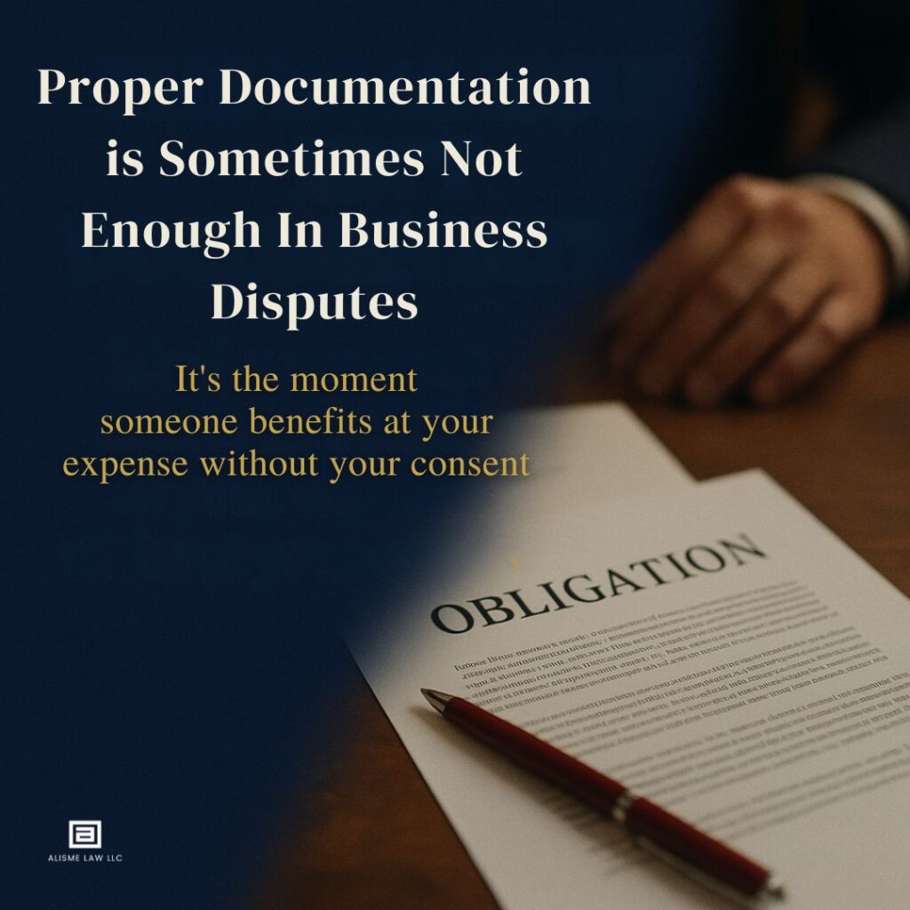 The real issue is not documentation. It is the moment someone benefits at your expense without consent. When that occurs, breach of contract litigation becomes the mechanism to address harm and recover what was taken.