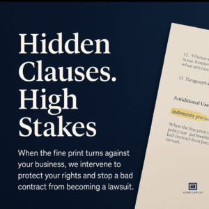 Contracts are the backbone of business relationships. They define roles, responsibilities, and expectations. But sometimes the most important part of a contract is not the headline term—it is the fine print. Hidden clauses in a contract can decide the fate of a company. At Alisme Law, we help business owners identify risks and enforce their […]