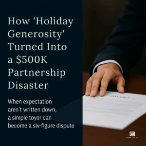 When expectations aren’t written down, a simple favor can become a six-figure dispute. During the holidays, many business partners make quick, informal decisions. A favor is extended. A timeline is adjusted. Money moves without documentation. The intention is goodwill, not risk. But when expectations are not written clearly, misunderstandings grow into serious partnership disputes. This real scenario shows how a simple act […]